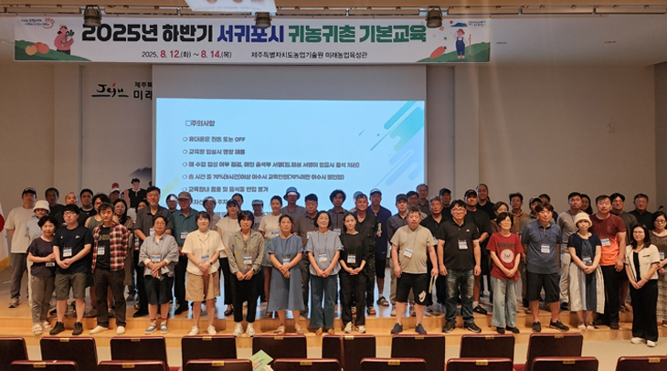 서귀포시는 신규 귀농·귀촌인의 안정적 정착을 돕기 위해 이달 12일부터 14일까지 도 농업기술원에서 '2025년 하반기 서귀포시 귀농귀촌 기본교육'을 운영하고 있다.