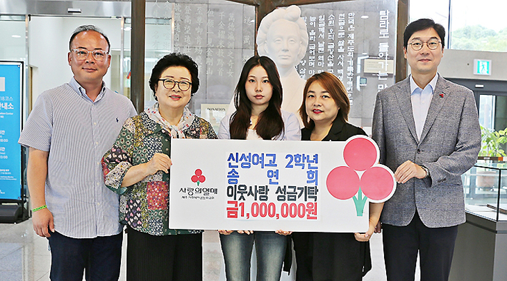 신성여고 2학년 송연희 양은 지난 12일 김만덕기념관(관장 강영진)을 방문해 이웃사랑 성금 100만원을 제주사회복지공동모금회(회장 강지언)에 기탁했다.