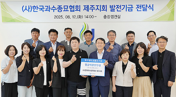 (사)한국과수종묘협회 제주지회는 지난 12일 제주대학교를 방문해 발전기금 2000만원을 전달했다.