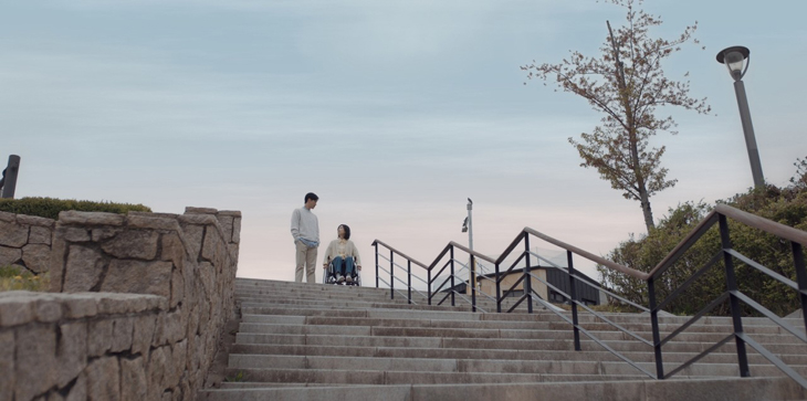 성지혜 감독의 영화 <우리 둘 사이에>는 비장애인으로 18년, 장애인으로 17년을 살고 있는 여성 은진(김시은)의 임신과 출산의 과정을 그리고 있는 작품이다. 여전히 우리가 사는 이곳에서 휠체어를 탄 여성 장애인의 존재를 우연이라도 맞닥뜨리기 어려운 이유는 굳이 설명할 필요가 있을 것이다. 장애인의 이동권이라는 기본적인 삶의 조건은 여전히 충족되지 않았기 때문이다. 비겁할 정도로 지난하다. 비난과 질시의 투덜거림 속에 우리는 함께 사는 이 세상에서 누군가의 자리를 천천히 그리고 확실히 지워가고 있다. 장애인들이 우선 탑승하는 것이 응당 옳은 지하철 역사의 엘리베이터 앞에서 수많은 비장애인들의 문전성시로 자신의 자리를 확보하지 못한 채 덤덤히 멈춰 있던 은진의 모습과 그 순간을 무겁게 에워싸던 침묵은 많은 것을 대신 설명한다. <우리 둘 사이에>의 주인공 은진과 호산(설정환)부부는 긴 연애 끝에 결혼을 했고 서로를 의지하며 함께의 삶을 이어가는 중이다. 이 둘 사이에 아이가 생긴다. 장애인 은진과 비장애인 호산 사이에 생긴 이 아이의 존재는 둘의 세상을 다시 한 번 재정의하게 만든다. 각고의 노력 끝에 만들었을 두 사람의 안전한 세상이 흔들린다. 가족이라는 집단과 사회라는 세상 사이에서 부부와 아이는 쉽지 않은 주차들과 맞닥뜨린다. 영화는 34주라는 임신의 기간 동안 이 세 사람이 겪는, 특히 은진이 겪게 되는 수많은 변수들을 고요이 응시한다. 격렬한 신체와 정신의 변화를 겪는 은진의 요동은 배우 김시은의 안정적인 연기로 더욱 생생하게 그려진다. <우리 둘 사이에>는 저출산 시대에 던지는 묵직한 질문을 품은 영화이기도 하다. 우리는 준비가 되어 있는가, 우리라는 말은 얼만큼 넓어질 수 있는가.