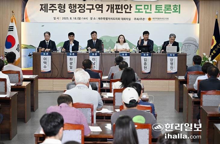 제주특별자치도의회는 18일 의회 대회의실에서 이상봉 의장과 시민이 참석한 가운데 제주형 행정구역 개편안 도민 토론회를 열었다. 강희만 기자