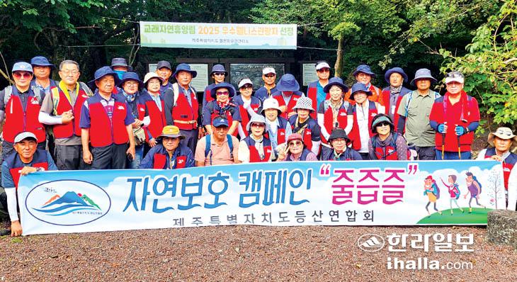 제주특별자치도 등산연합회(회장 강근호)는 지난 17일 교래자연휴양림 숲길 일대에서 자연보호 캠페인 '줄·즙·즐' 행사를 실시했다.