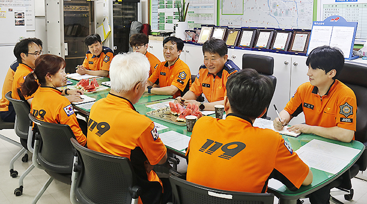 이번 방문은 연일 계속되는 폭염 속에서도 도민의 안전을 위해 헌신하는 현장대원들의 노고를 격려하고, 대원들의 사기를 북돋우기 위해 마련됐다.