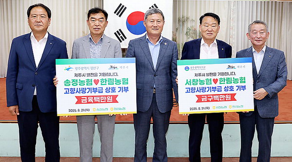 [한라일보] 제주시 한림농협과 광주광역시 서창농협·송정농협은 21일 한림농협 본점에서 고향사랑기부금 상호 기탁식을 갖고, 지역 간 연대와 상생협력을 이어가기로 했다.