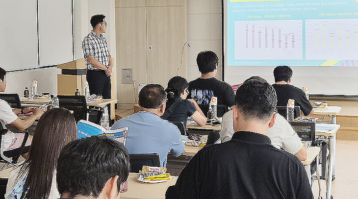 축산물품질평가원 제주지원(지원장 원광연)은 지난 20일 제주양돈농협 축산물종합유통센터 회의실에서 제주양돈농협 성공대학 교육생, 생산자 조합, 임직원 등 20여 명을 대상으로 '제주 양돈산업 품질관리 및 탄소 저감기술 교육'을 실시했다.