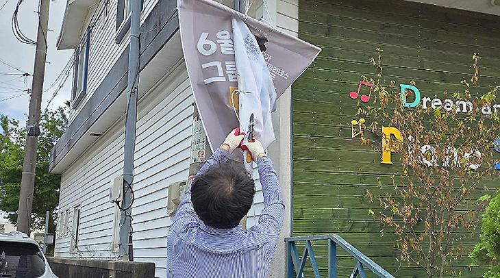 서귀포시 동홍동(동장 김철식)은 지난 20일 안전한 보행 환경 조성을 위해 학원가 밀집 지역과 유동인구가 많은 장소 일대에서 불법 유동 광고물 정비를 실시했다.