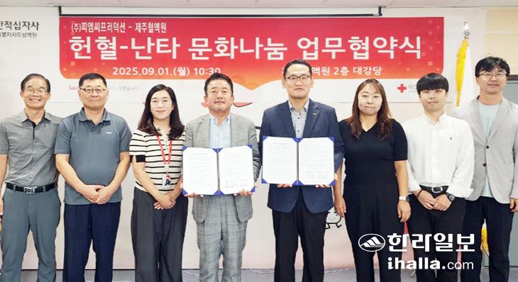 (주)PMC프러덕션(대표이사 홍창도)과 대한적십자사제주도혈액원(원장 임정한)은 지난 1일 헌혈 문화 확산과 지역사회 문화 나눔 실천을 위한 업무협약을 체결했다.