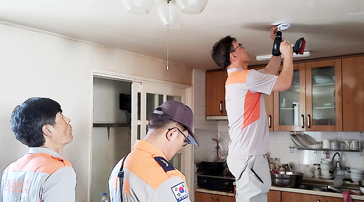 제주시 화북남성의용소방대(대장 강재천)는 지난 6일 지역 내 취약계층 가구에 화재감지기 및 소화기를 설치·보급하고 소방안전 및 응급처치 관련 홍보를 진행했다.
