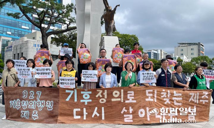 927제주기후정의행진조직위원회는 23일 오전 제주시청 앞에서 행사를 알리는 기자회견을 개최했다.