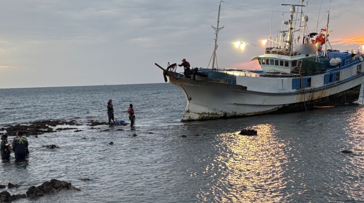 서귀포시 성산읍 신풍포구 북동쪽 삼달리 인근 해상에서 좌초한 A호. 서귀포해경 제공