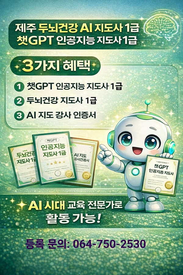 제주 최초 ‘두뇌건강 인공지능지도사 1급·AI 지도 강사 과정’ 개설