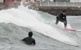 [한라일보] 13일 제주시 이호테우해수욕장에서 서퍼들이 추위에도 아랑곳하지 않고 파도타기를 즐기고 있다. 이상국기자 |