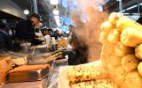 [한라일보] 12일 제주시민속오일시장 먹거리 좌판에서 찰옥수수가 모락모락 익어가고 있다. 이날 한라산에서는 지난해보다 18일 빨리 눈이 관측되기도 했다. 이상국기자 |