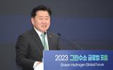 [한라일보] 청정 수소 에너지 전환을 위한 국제적 협력 방안을 모색하는 논의의 장이 제주에서 개최됐다. 제주특별자치도와 산업통상자원부가 공동 주최하는 '2023 그린수소 글로벌 포럼'이 23일 제…