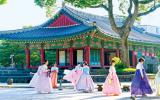 [한라일보] 6일 제주시 제주목 관아를 찾은 외국인 관광객들이 한복을 입고 기념 사진을 찍고 있다. 이상국기자