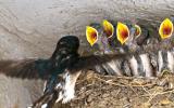 [한라일보] 29일 서귀포시 성산읍 성산리 한 건물 처마에 둥지를 튼 제비가 둥지에서 기다리는 새끼들에게 먹이를 주고 있다. 강희만기자
