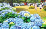 [한라일보] 후텁지근한 날씨가 이어진 11일 제주도기념물로 지정된 서귀포시 성산읍 혼인지를 찾은 관광객들이 화려한 수국을 배경으로 기념사진을 촬영하고 있다. 이상국기자