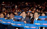 '2040플라스틱 제로 제주'를 실현하기 위한 범도민 결의대회가 4일 제주국제컨벤션센터 탐라홀에서 열렸다. 오영훈 제주지사와 김광수 제주교육감, 김경학 제주자치도의회의장 등 참석자 전원이 탈…