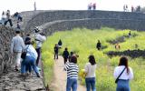 [한라일보] 30일 제주시 구좌읍 하도리 별방진을 찾은 관광객들이 성곽과 유채꽃을 배경으로 기념사진을 찍으며 제주에서의 추억을 새기고 있다. 강희만기자