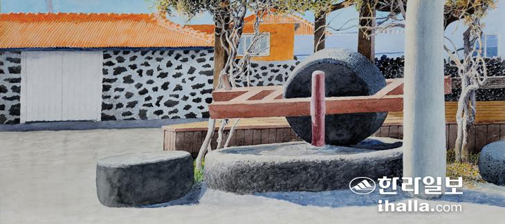 ![]() [한라일보] 한라산 소주 생산 공장이 옹포리에 있는 이유가 궁금하여 다양한 자료와 인터뷰를 통해 알게 된 사실이 있다. 옹포리에서 솟아나는 물에는 각종 미네랄이 풍부하다는 사실이 검증되었다고 한다. 특히 바나듐 성분이 많다는 것은 인체의 신진대사에 꼭 필요한 희귀 미네랄 원소다. 그 기능은 당뇨 혈당을 낮추고 콜레스테롤 합성을 억제하는 것으로 알려져 있다. 옹포리 물의 진가를 경제적 차원에서 가장 명확하게 실천적으로 보여주고 있다고 해야 할 것이다. 옹포리 사람들이 보유한 소중한 자산이 옹기 모양을 닮은 마을 지형 속에 들어 있는 것이다. 수질의 측면 못지않은 것이 경관적 자원 가치다. 화산섬이라고 하는 제주의 특성 중 하나는 대부분의 하천이 건천이라는 것이다. 그에 비하면 옹포리는 풍부한 수량을 가지고 있어서 다양한 활용 가치를 창출 할수 있는 여건이 된다. 그동안 차곡차곡 진행시켜온 옹포천 관광자원화 사업들이 결실을 거두기 위하여 더욱 발전해가는 과정이다. 역사적으로 옹포리는 물의 가치보다 포구로서의 가치가 높았다. 1271년 삼별초군이 명월포로 들어왔다는 기록은 현재 옹포리 포구를 의미 한다. 부근에 하나 뿐인 포구라는 뜻으로 옛 지명이 '독개'라고 불렸다. 그러한 환경적 요인에서일까 옛날에는 포구를 중심으로 어로활동과 해녀들의 물질을 생업으로 살아온 마을이라고 한다. 농사도 지었지만 암반이 많아서 소출을 내기가 힘든 여건. 팔순이 넘는 마을 어르신들의 회고담 속에 옹포리의 정신이 느껴진다. 이른바 금빌레 개척세대라고 해야 할 것이다. 조상들이 물려준 밭의 대부분은 빌레왓(암반이 많은 밭)이었다. 여기서 나오는 곡식을 가지고는 식솔들의 끼니를 항상 걱정해야 했던 현실 속에서 어느정도 나이가 들면 외지로 나가 일을 해야 했다. 특히 일제 강점기 일본으로 건너가 노동을 하며 돈을 벌던 분들의 애향심은 대단했다고 한다. 어렵게 번 돈을 고향으로 보내며 '우리처럼 고향을 떠나지 않고 후손들이 살 수 있도록 빌레왓 위에 흙을 사다가 복토해서 금빌레 옥토로 만들어 달라.' 다른 마을보다 좋은 밭을 가지고 말겠다는 마을공동체의 오기가 발동한 것이다. 그 금빌레 만들기 열풍이 오늘의 풍요로운 옹포리를 있게 한 것. 위대한 애향심이라고 해야할 것이다. 개척정신으로 모든 시련을 극복해내는 불굴의 공동체. 외지에 나가서 번 돈으로 흙을 사들인 옹포리의 역사는 강인한 제주인의 기질을 가장 극명하게 보여주는 사례라고 해야 할 것이다. 옹포리의 가장 대중적인 관광자원은 사계절 아름다운 석양을 감상할 수 있는 위치적 강점이다. 비양도가 있어서 더욱 운치가 있다. 이를 집중적으로 견인할 기반 시설이나 포토존 지역이 다양하게 만들어진다면 좋겠다는 아쉬움을 표현하는 분들이 많았다. 한편으로 너무 작위적인 요소들은 자연스러운 마을 분위기와 어울리지 않을 가능성도 크다고 주장하시는 분도 있고. 홍창부 이장에게 옹포리의 가장 큰 자긍심을 묻자 간명하게 대답했다. "개척정신" 불굴의 의지. 금빌레를 만들겠다고 마을공동체가 나섰던 그 마음가짐은 하루아침에 나온 것이 아니라 조상 대대로 내려온 어떤 유전적 기질이라는 의미가 내포되어 있다. 앞으로도 마을에 숱한 난관들이 닥치더라도 옹포리 사람들이 보유한 끈기와 극복의지를 가지고 반드시 이겨내고야 말겠다는 결기. 옹포천의 풍부한 수량에 부러움을 느끼면서, 저러한 자원들이 부가가치 높은 마을공동체의 수입원이 될 수 있다면 스스로 복지 역량을 발휘할 수 있는 결과를 얻을 수 있을 것이다. 마을 발전을 위한 특화전략이라는 것이 하늘에서 뚝 떨어지는 것이 아니라 있는 자원을 창의적으로 활용할 방법을 찾아 나서는 일이다. 옹포리가 보유한 것들은 대부분 숙원사업의 형태로 많은 시간을 고민하고 실천전략을 짜고 있었다. 행정적 지원이 획기적으로 이뤄질 수 있다면 그 성과와 파급력은 지역경제에 큰 도움을 줄 수 있는 것들이 수두룩한 마을. 마을공동체의 역량에 대하여 의구심이 든다면 '금빌레 개척의 역사'를 확인하라고 하고 싶다. 늘 후손들을 생각하며 오늘을 살아가는 사람들의 마을이라 전하면서. <시각예술가> 방앗돌이 있는 휴게공간 <수채화 79㎝×35㎝> ![]() 점과 선, 면들이 눈부신 광선 속에서 어떻게 반응하며 다른 존재들에게 영향을 미치게 되는 지 그 회화적 궁금증을 그릴 수 있는 독특한 만남이었다. 서로 싸우는 것으로 보이나 실은 상보적인 아름다움이다. 공간감이라고 하는 것이 단순한 명암 원근법에 의해서 그려지는 것이 아니라 물상과 물상이 결부되는 과정에서 생성된다는 것을 확인하는 사례. 방사탑과 비양도 <수채화 79㎝×35㎝> ![]() <저작권자 © 한라일보 (http://www.ihalla.com) 무단전재 및 수집·재배포 금지 > |