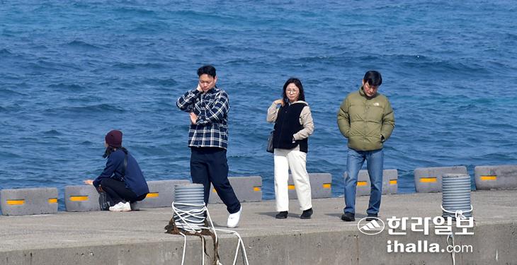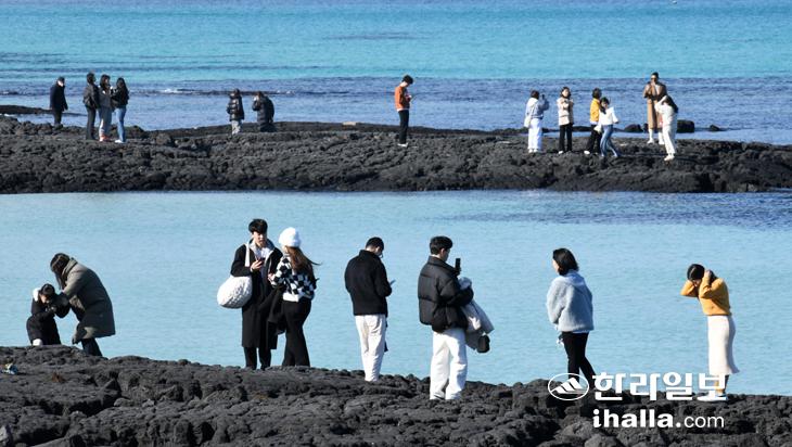 [한라일보] 1일 제주시 협재해수욕장과 고내포구(아래)을 찾은 관광객들이 제주의 겨울바다 정취를 즐기고 있다. 제주지방은 2일부터 다시 찬 공기가 내려오면서 3일까지 쌀쌀한 날씨가 찾아올 것으로 예상된다.