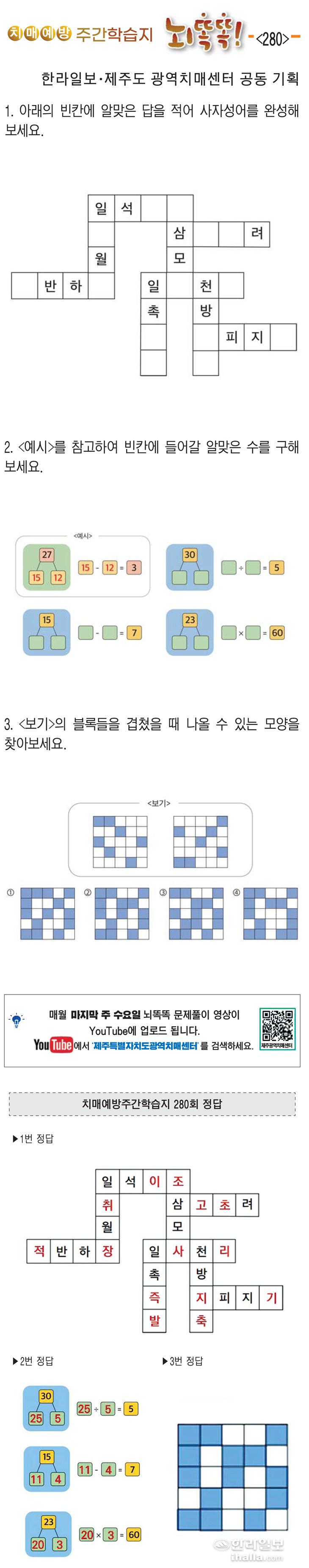 [치매예방주간학습지 뇌똑똑] (280)