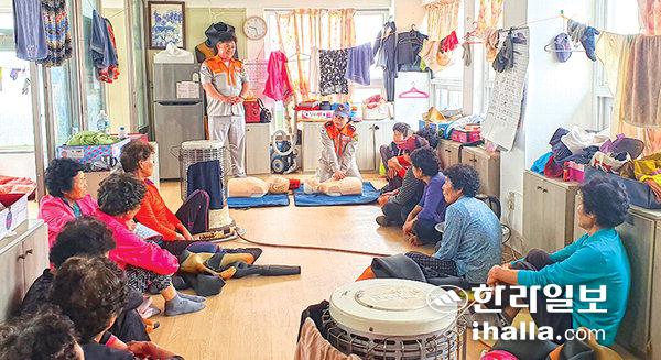 ![]() 제주동부소방서 성산의용소방대(대장 김법수·홍재영)는 최근 성산리 해녀를 대상으로 '찾아가는 응급처치 교육'을 실시했다. 이번 교육은 물질 전 안전수칙과 심폐소생술 이론 교육, 자동제세동기(AED) 사용법 실습 등으로 이뤄졌다. 성산의용소방대는 "이번 교육이 응급상황 발생시 초기 대응력을 높일 수 있길 기대한다"고 했다. 제주시새마을부녀회 주거환경 개선사업 ![]() 이번 사업에서는 주거환경 개선이 절실히 필요하지만 경제적인 어려움으로 집을 수리하지 못하고 있는 어려운 가정 13가구를 선정해 도배, 장판교체, 노후된 전기선 및 방충망 교체, 주변 환경정비 등이 진행됐다. 동부지역감리교연합회 학교 발전기금 ![]() 도두동 민·관 합동 풍수해 대응 훈련 ![]() <저작권자 © 한라일보 (http://www.ihalla.com) 무단전재 및 수집·재배포 금지 > |