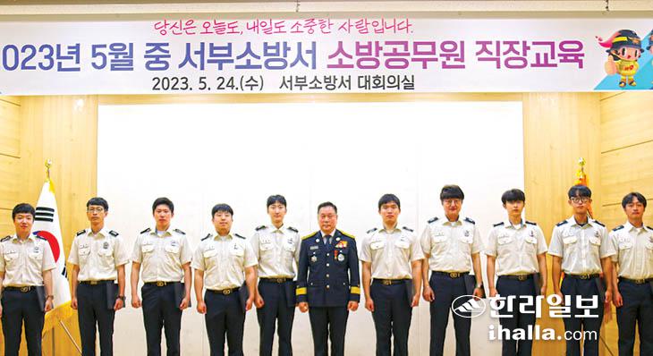서부소방서(서장 김영호)는 24일 소방서 대회의실에서 전 직원들을 대상으로 직장교육을 실시했다. 이날 교육은 정신건강 프로그램과 소방공무원으로서 직무수행에 필요한 능력 향상 및 공직자로서 올바른 가치관을 확립하기 위해 추진됐으며 주요 내용은 ▷자살예방 및 심리이해 향상교육 ▷비위 사례를 통한 청렴 교육 등이다.