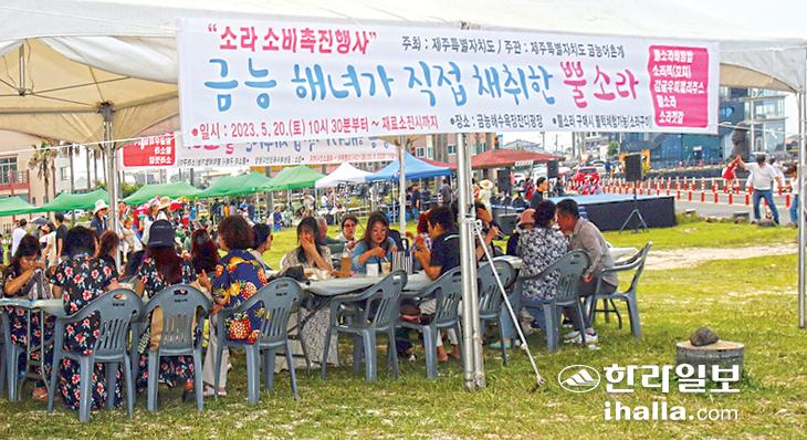 제주시 한림읍 금능리(이장 송문철)는 지난 21일 해녀의 주요 소득원인 소라 소비 촉진과 지역경제 활성화를 위해 금능해수욕장 잔디광장에서 뿔소라 판매 행사를 실시했다.