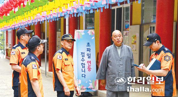 제주소방서(서장 양인석)는 24일 부처님 오신 날을 앞두고 관음사와 천왕사를 방문해 관계자 대상으로 화재예방을 위한 현장 행정지도를 실시했다.