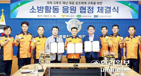 ![]() 제주소방서(서장 양인석)는 25일 제주소방서 소회의실에서 크루즈 선박관련 민간업체 (유)삼다쉬핑, (유)썬라이즈 마린과 화재 시 공동 대처를 위해 소방응원협정 체결식을 가졌다. 이번 협정의 주요내용은 ▷화재 현장에서의 인명 대피 유도 및 구조·구급 활동 지원 ▷선박 관계자 활용 선내 진입과 통역 지원 등 각종 재난 시 언제든지 협조 지원 출동하도록 하고 현장에서 필요한 교육과 합동 훈련 등을 공동으로 실시하기로 했다. 제주 귀농귀촌·청년농업인 아카데미 ![]() 이도1동 청소년유해환경 단속 실시 ![]() 청소년 범죄예방위 임원 정기총회 개최 ![]() <저작권자 © 한라일보 (http://www.ihalla.com) 무단전재 및 수집·재배포 금지 > |