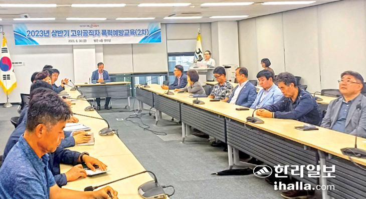 ![]() 제주특별자치도 자치경찰단(단장 박기남)은 3일 창설 제17주년 기념행사를 열고 제주자치경찰의 의지와 기상을 적극 표명하면서 자부심과 긍지로 70만 제주도민의 안전을 책임지는 지킴이 역할을 충실히 수행할 것을 다짐했다. 자치경찰단 3층 회의실(참꽃마루)에서 열린 이번 행사는 '도민 중심·도민행복 대한민국 자치경찰 2.0시대를 열어가는 제주자치경찰'이라는 주제로 개최됐다. 기념행사에는 제주도 자치경찰위원회 위원장, 교통시설심의위원회 위원장 등 유관단체 70여명이 참석했으며, 오영훈 제주도지사의 축하메시지도 전달됐다. 오영훈 지사는 "제주자치경찰 창설 17주년을 축하하며 2006년 제주특별자치도 출범과 함께 창설된 이후 '우리동네 경찰관'으로서 도민의 안전과 행복을 위해 묵묵히 치안현장을 지켜왔다"며 "자치경찰권 강화는 국정과제이고 이와 함께 제주가 이원화 자치경찰제 시범운영 지역으로 선정된 만큼 진정한 제주형 자치경찰의 완성 더 나아가 대한민국 자치경찰의 완성을 위해 자치경찰단이 사명감을 갖고 최선의 노력을 다해 줄 것"을 당부했다. 박기남 제주자치경찰단장은 "제주자치경찰의 미래가 대한민국 자치경찰의 미래라는 신념과 사명감을 갖고 70만 제주도민이 더 편안하고 안심하고 생활할 수 있도록 공감 치안을 더욱 강화하는 한편, 대한민국 자치경찰제 발전을 위해 우리 모두가 힘을 합쳐 앞으로 나아가야 한다"고 말했다. 이번 자치경찰단 창설 17주년 기념식은 업무유공 경찰관 및 주민봉사대원과 명예기마대원 등에게 표창장과 감사장을 수여하는 시간도 함께 진행됐다. 제주펜, 베트남과 문학 교류 초청 토론 ![]() 제주펜과 베트남문인협회 간 문학 교류의 일환으로 마련된 이날 행사엔 제주펜과 베트남 문인(통역 포함) 25명이 자리했다. 서귀포시 고위공직자 성폭력 예방교육 ![]() 이번 교육에서는 한국양성평등교육진흥원 전문강사인 고은비 제주해바라기센터 부소장이 강사로 나섰다. 효성E&G 취약 계층에 선풍기 지원 ![]() 만덕로타리클럽 이호동에 쌀 기탁 ![]() <저작권자 © 한라일보 (http://www.ihalla.com) 무단전재 및 수집·재배포 금지 > |