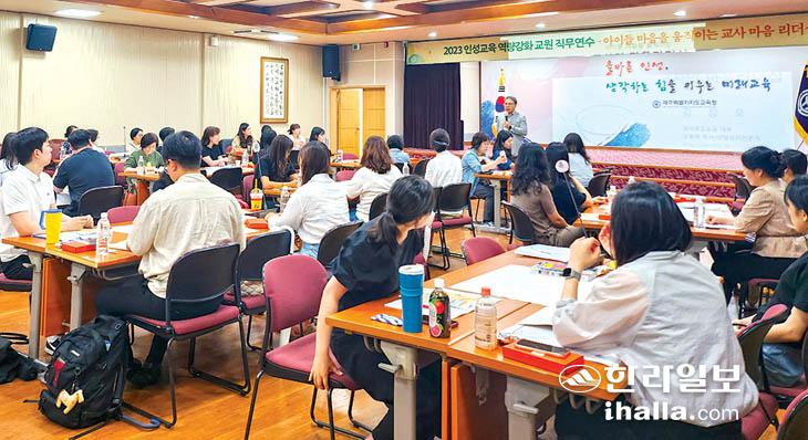 제주도교육청은 지난 8일 대회의실에서 초·중·고 교사 50명이 참여해 '아이들 마음을 움직이는 교사 마음 리더십'이란 이름으로 인성교육 역량 강화 교원 연수를 운영했다.