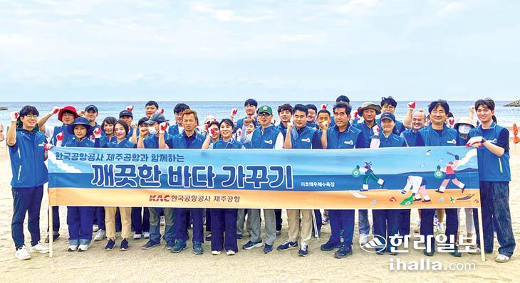 한국공항공사 제주공항(공항장 손종하)은 깨끗하고 안전한 해양공간 조성을 위해 지난 13일 반려해변인 제주시 이호테우해변에서 직원 40여명이 참여한 가운데 해변 주변에 버려진 쓰레기를 수거하는 등 정화활동을 실시했다.