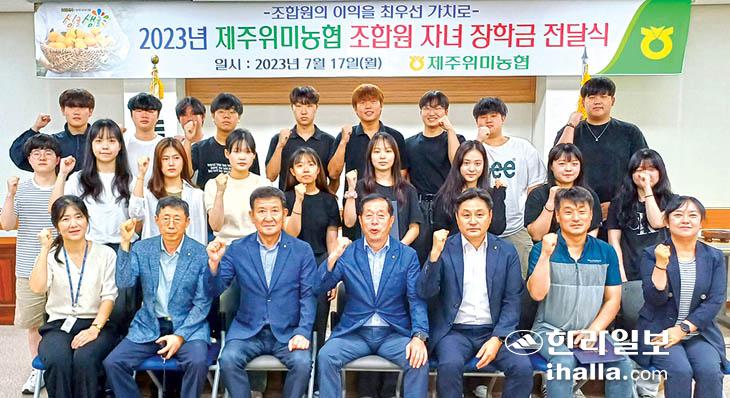 제주위미농협(조합장 현재근)은 지난 17일 위미유통센터 회의실에서 2023년도 조합원 자녀 장학금 수여식을 개최하고 대학교 신입생 56명에게 각 100만원씩 총 5600만원의 장학금을 전달했다. 위미농협은 지역 인재 양성을 위해 2003년부터 매년 조합원 자녀를 선발해 장학금을 지원해오고 있다.