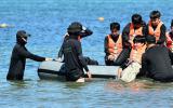 [한라일보] "하나 둘 셋, 구호에 맞춰서 노 젓는거야. 할 수 있겠죠?" 30일 오전 제주시 이호해수욕장. 해양경찰관 강사의 구호에 맞춰 평상복에 구명조끼를 갖춰 입은 아이들이 하나둘씩 바다로 뛰어들었다. 물이 무서운듯 잠시 …