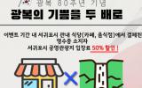 [한라일보] 서귀포시가 광주 80주년을 기념해 14일부터 31일까지 공영 관광지 입장료 반값 행사를 개최한다고 13일 밝혔다. 대상자는 행사기간 중 서귀포시 소재 음식점 영수증을 지참한 관광객으로 서귀포시 소재 공영 관광지 6…